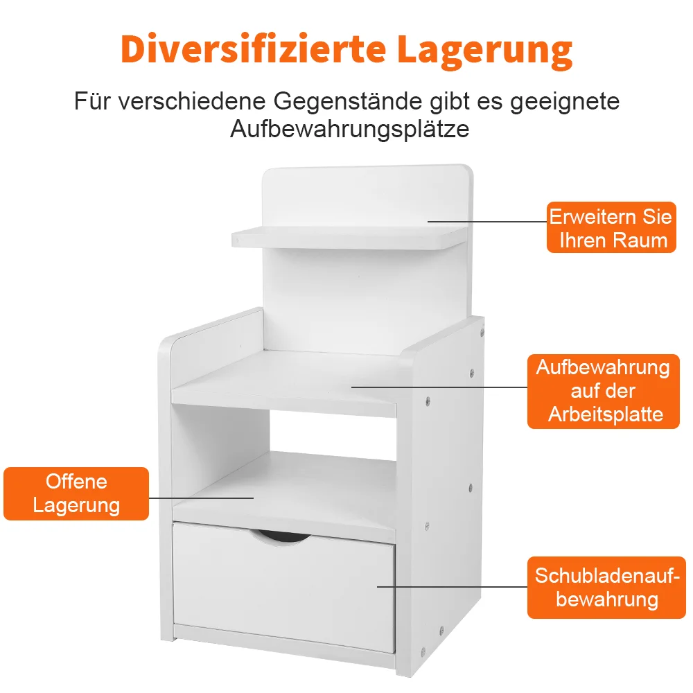 The bedside table is made of sturdy Wood-plastic panels, not easy to crack or deformation.Easy to clean,sturdy and durable.