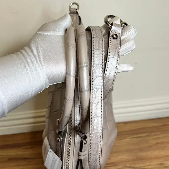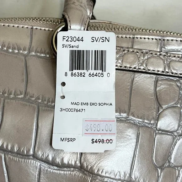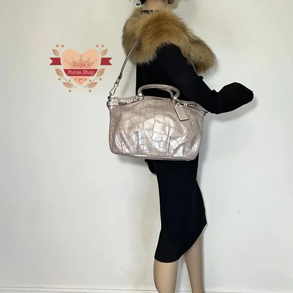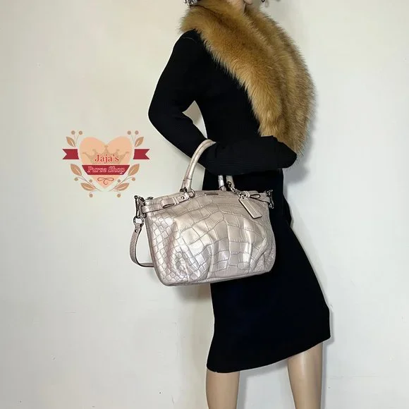 ❗️PLEASE READ CAREFULLY THE ENTIRE DESCRIPTION, MEASUREMENT & REVIEW ALL PHOTOS(ZOOM IN)BEFORE PURCHASE/BUYING❗️👉🏻 Take 20% for Selling Fees👈🏻💝FIRM PRICENO 💝OFFER💝💝NO FREE SHIPPING💝💝Coach Madison Embossed Exotic Sophia💝💝Note: Real Embossed Leather But Real Alligator Skin(Texture Only)💝💝New With Tag Attached💝Authentic Or Research💝Style No.F23044💝Serial No.A1376F23044💝Zipper Closure💝Coach Hang Charm💝Silver & Rusty Hardware 💝Embossed Exotic Leather💝Interior Zip & 2 Slip Pockets💝Fully Lined w Pink Satin Fabric💝Color: Sand (Light Pink)💝Leather Satchel Handle 4.5” Drop💝Leather Shoulder Handles 27”Long💝12"L Bottom-14”Center-15” Top x 9.5'H x 3.5"W💝MSRP $498+TAX