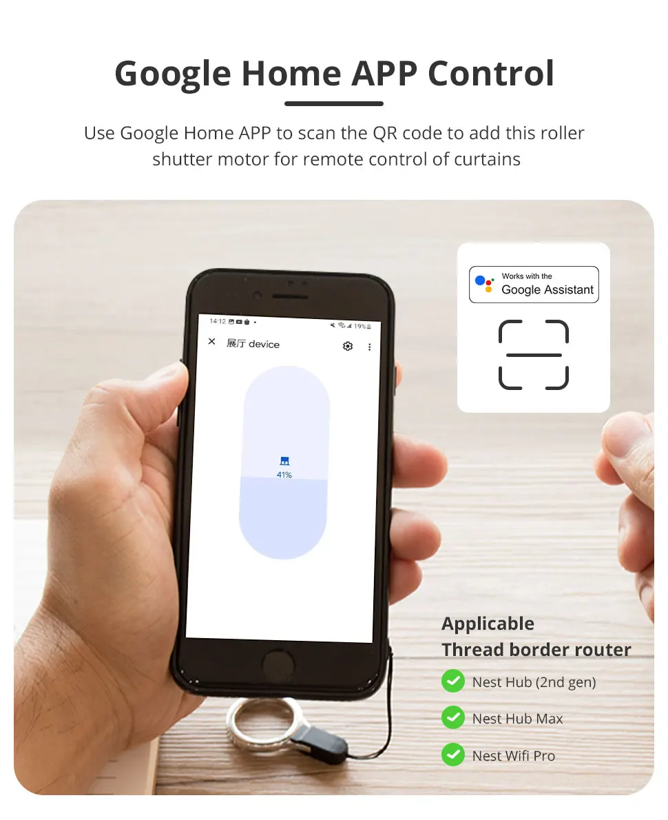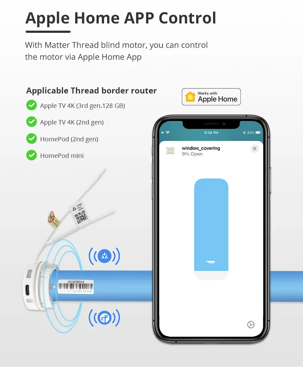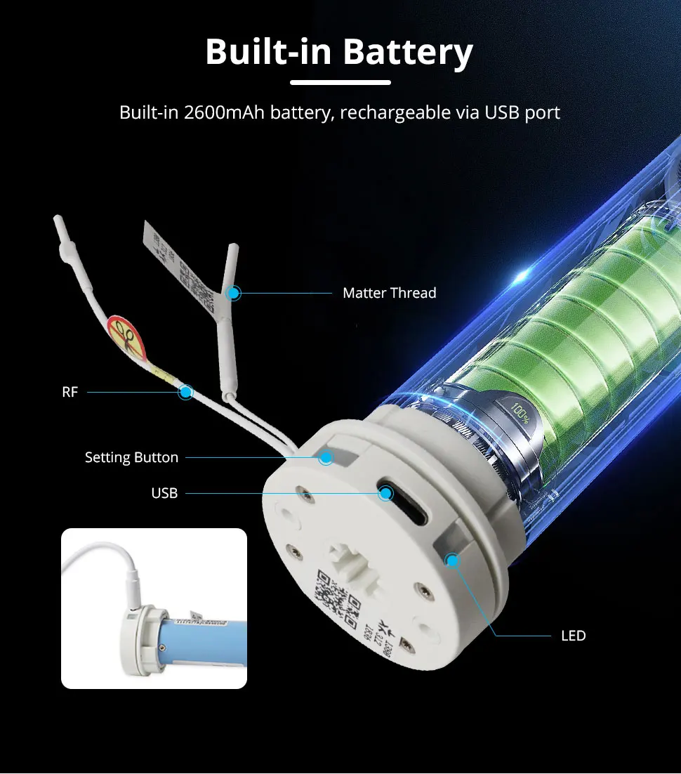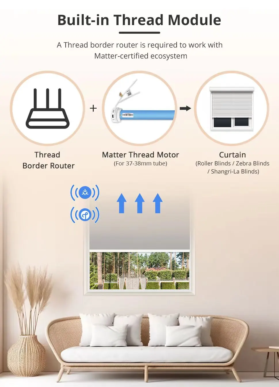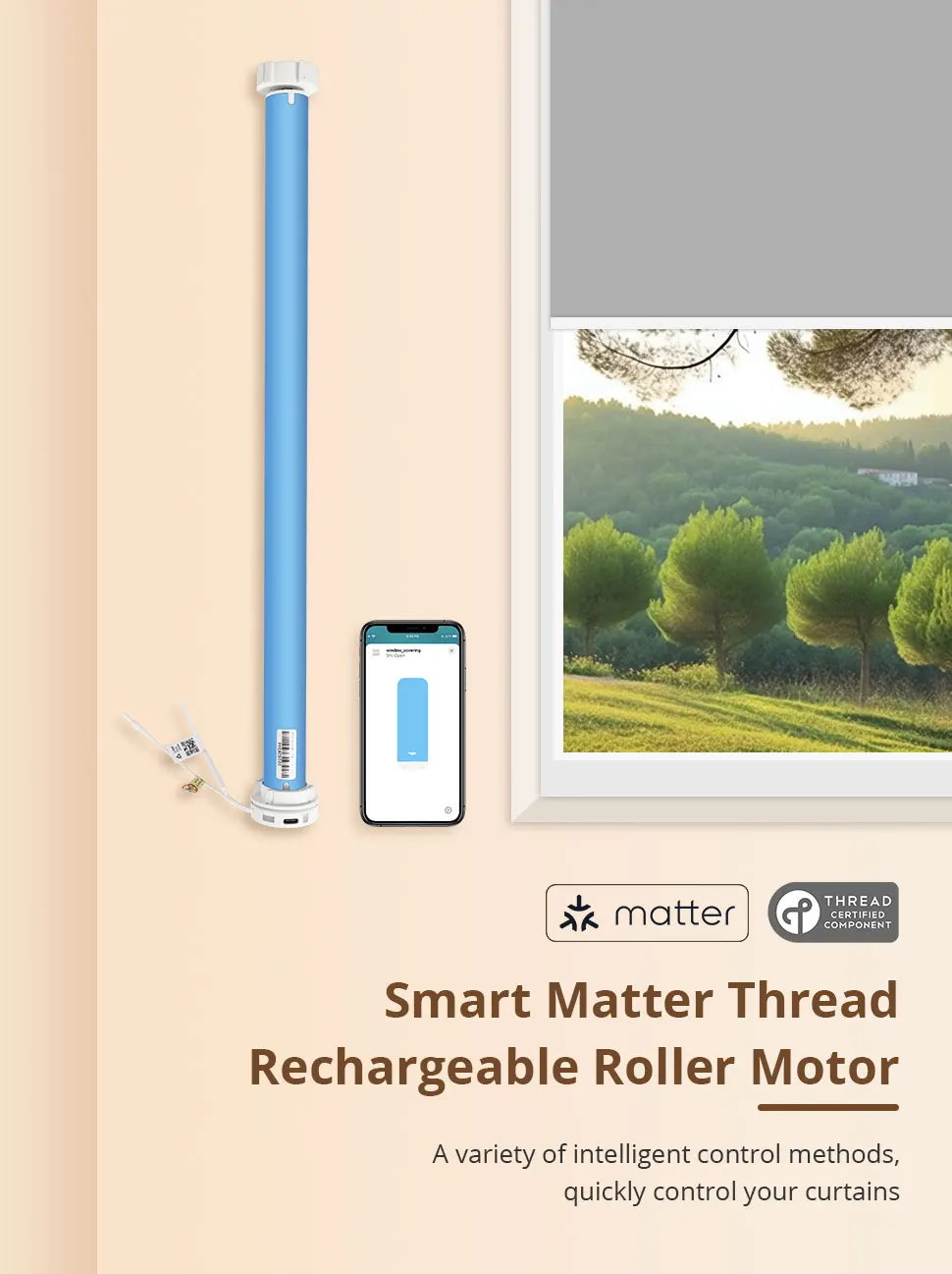 Zemismart Matter Over Thread Smart Roller Shade Blinds Motor Built in Battery for 38mm Tube Homekit Google Home Smartthings App