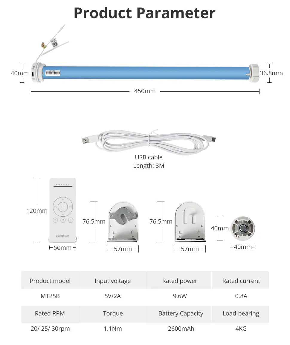 - The motor is suitable for blind tubes with a diameter of 37-38mm.
