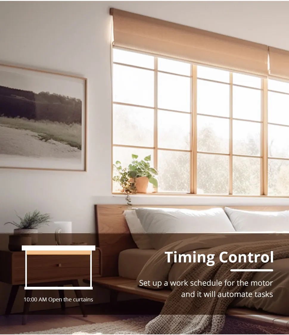 - Insert the motor into the tube, and turn the traditional blind into a smart control.